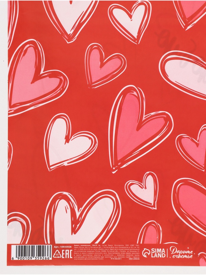 Бумага глянцевая двухсторонняя «Просто люблю», 70 × 100 см — Характеристики