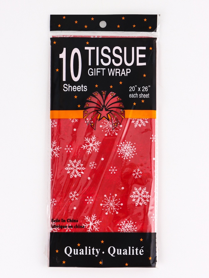 Бумага новогодняя упаковочная тишью «Снежинки на красном», красная, 50×66 см — Характеристики