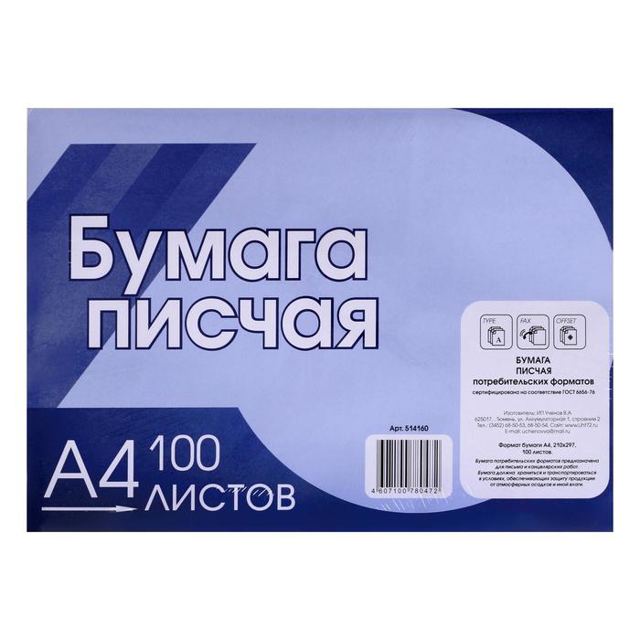 Бумага писчая А4, 100 листов, плотность 65 г/м², белизна 90-96%, эконом, в плёнке