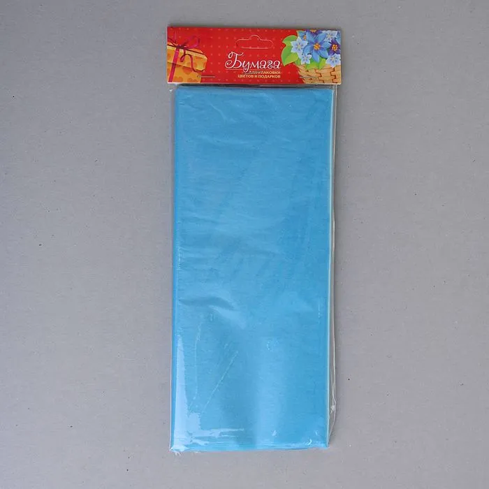 Бумага тишью, голубая, 50×66 см применяется для упаковки товаров и сувенирной продукции в магазинах дорогой одежды и парфюмерии, подарков и цветов, кондитерских и канцелярских товаров, придавая им особую значимость.