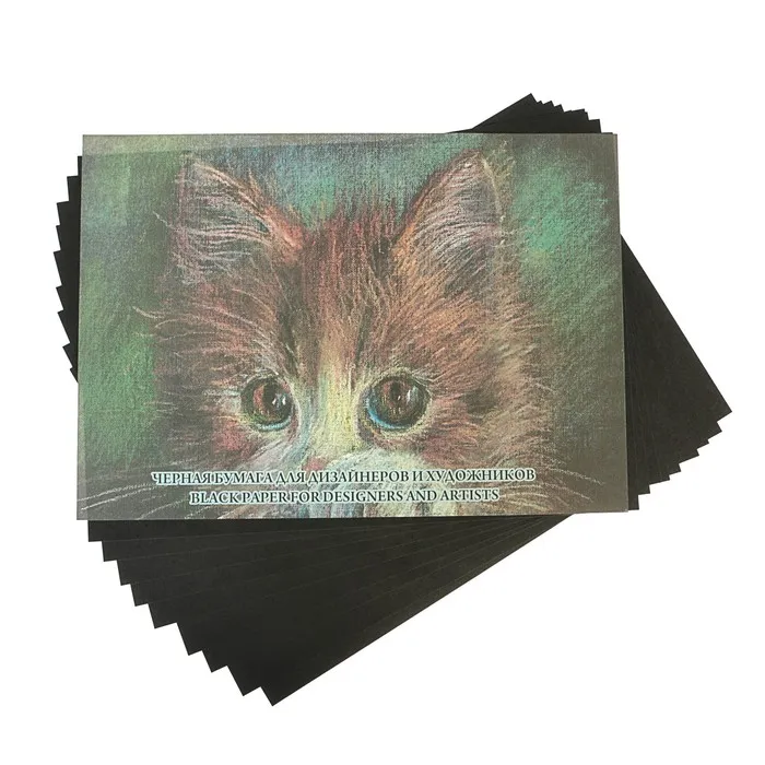 Чёрная бумага идеально подходит для юных художников и дизайнеров. Может использоваться для аппликаций и детского творчества, а также для рисования пастелью и мелками. Каждое изделие упаковано в термоусадочную пленку.