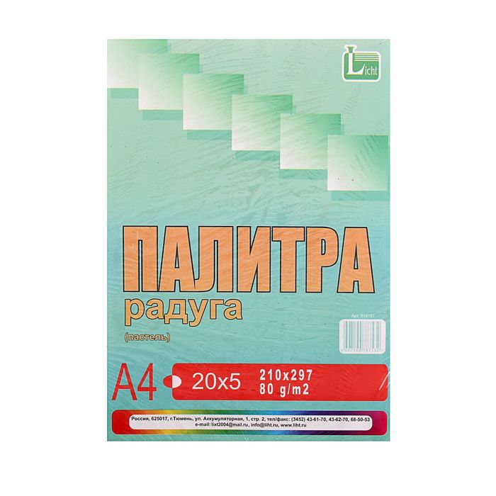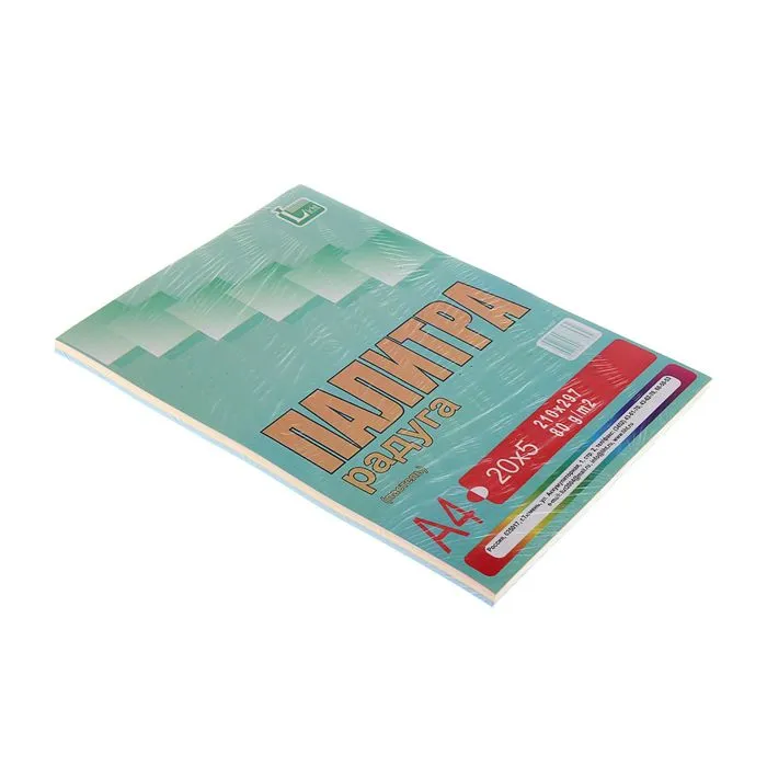 Бумага цветная А4, 100 листов "Палитра радуга" Пастель, 5 цветов, 80 г/м² — Характеристики