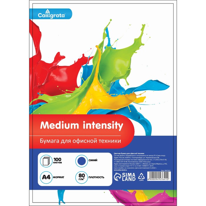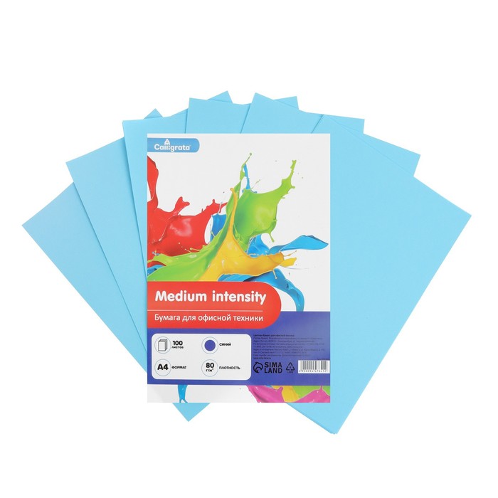 Бумага цветная А4 100л Calligrata, умеренный интенсив голубой 80 г/м2 — Характеристики