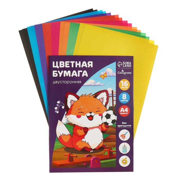 Бумага цветная А4, 16 листов, 8 цветов "Лиса" Calligrata, офсет 60 г/м2, двусторонняя, в папке — Характеристики