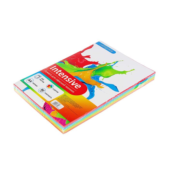Бумага цветная А4, 250 листов Calligrata Интенсив, 5 цветов, 80 г/м² — Характеристики