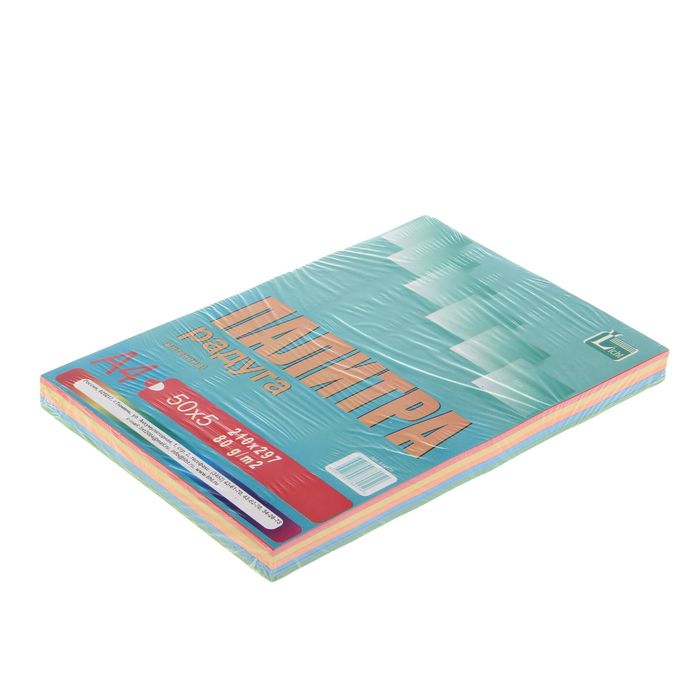 Бумага цветная А4, 250 листов "Палитра радуга" Интенсив, 5 цветов, 80 г/м² — Характеристики