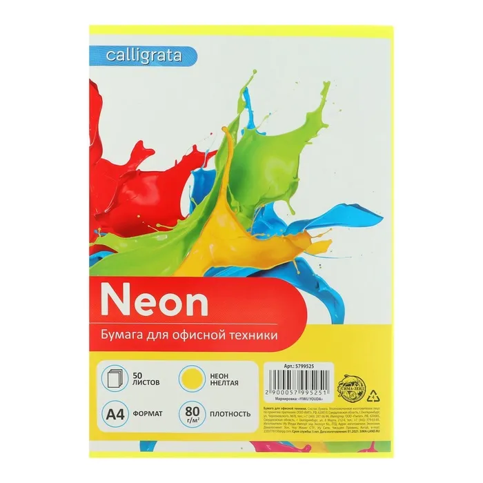 Набор неоновой бумаги формата А4 – это идеальный выбор для творчества, учебы и оформления. В комплекте 50 листов насыщенного желтого цвета, которые помогут выделить ваши работы.