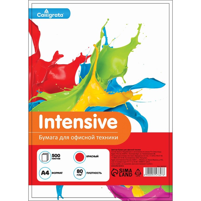 Бумага цветная А4, Calligrata, 500 листов, интенсив, 80г/м², красный — Характеристики