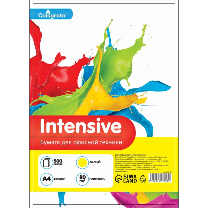 Бумага цветная А4, Calligrata, 500 листов, интенсив, 80г/м², желтый — Характеристики