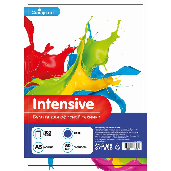 Бумага цветная А5 100л Calligrata Интенсив Синий 80г/м2 — Характеристики