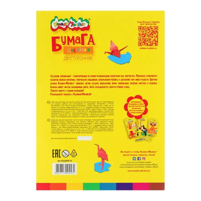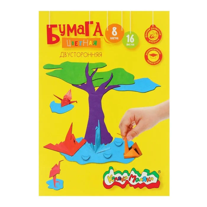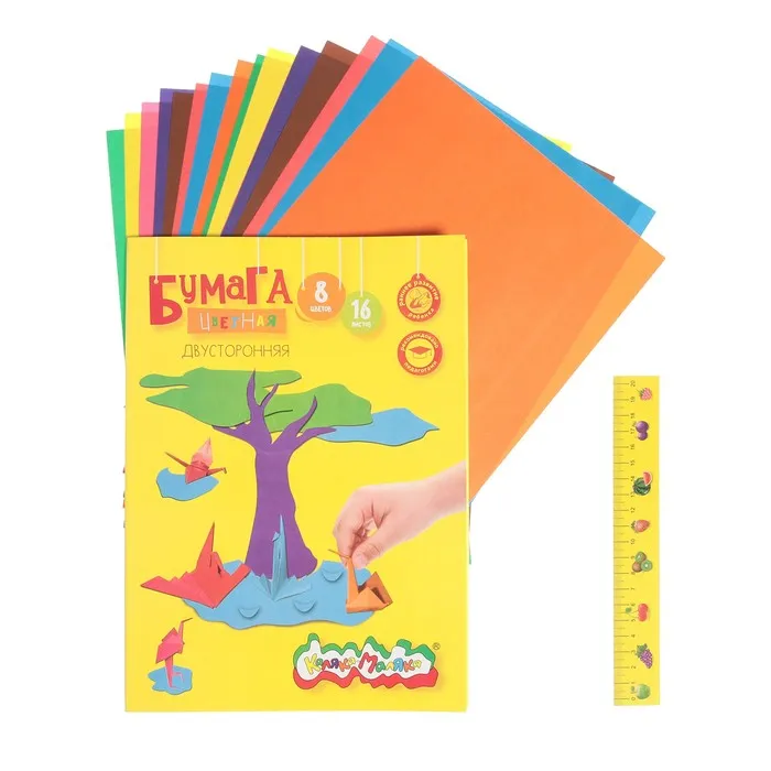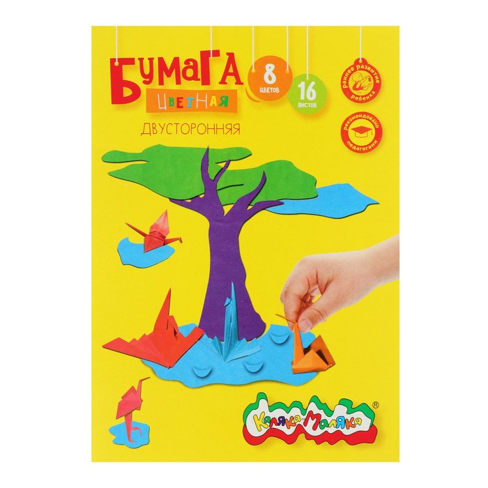 Бумага цветная двусторонняя А4, 16 листов, 8 цветов "Каляка-Маляка" — Характеристики