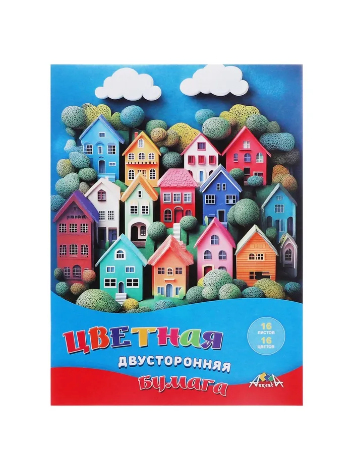 Бумага цветная двусторонний А4, 16 листов, 16 цветов, «Разноцветные домики» — Характеристики