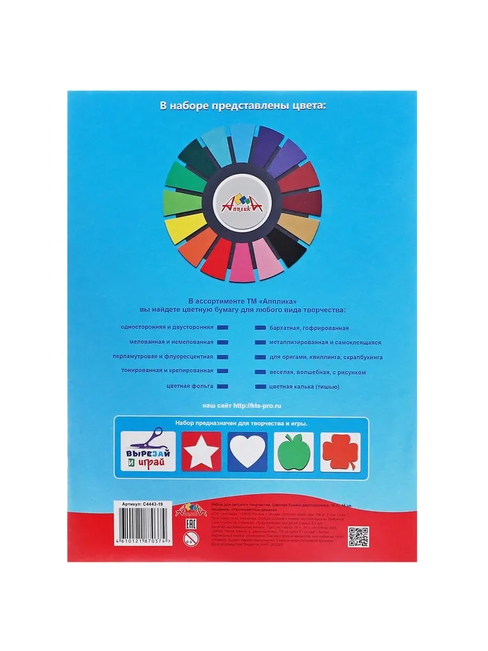 - 16 листов и 16 цветов: Разнообразие оттенков раскрывает возможности для самых разных проектов — от аппликаций до оформления презентаций.