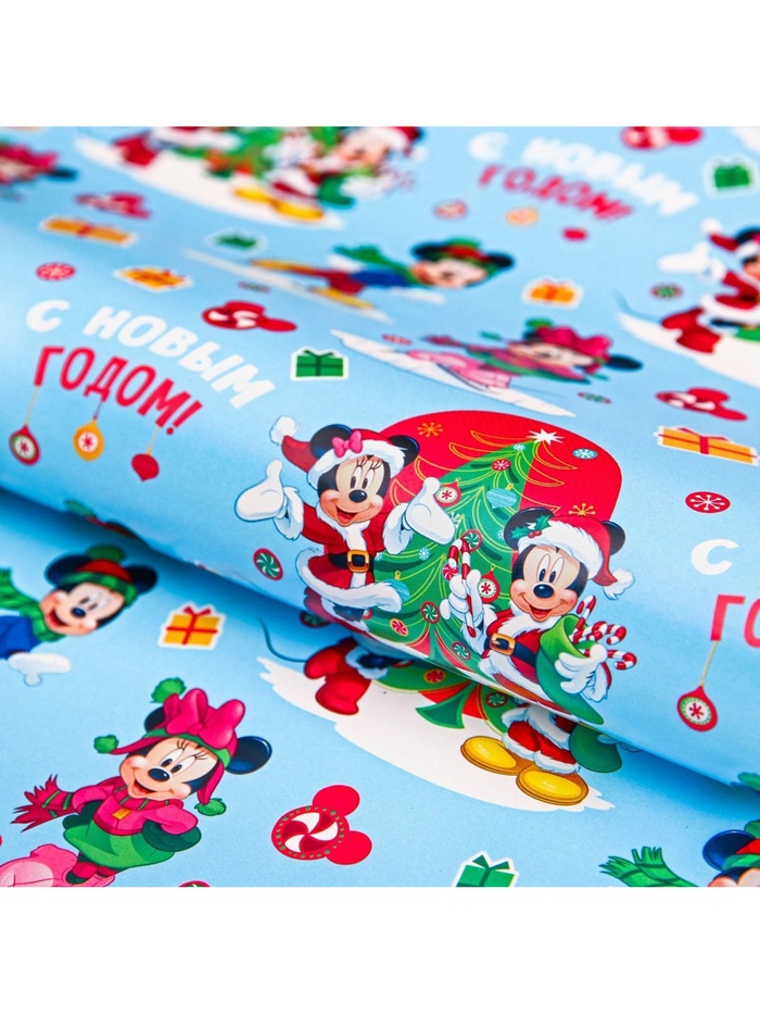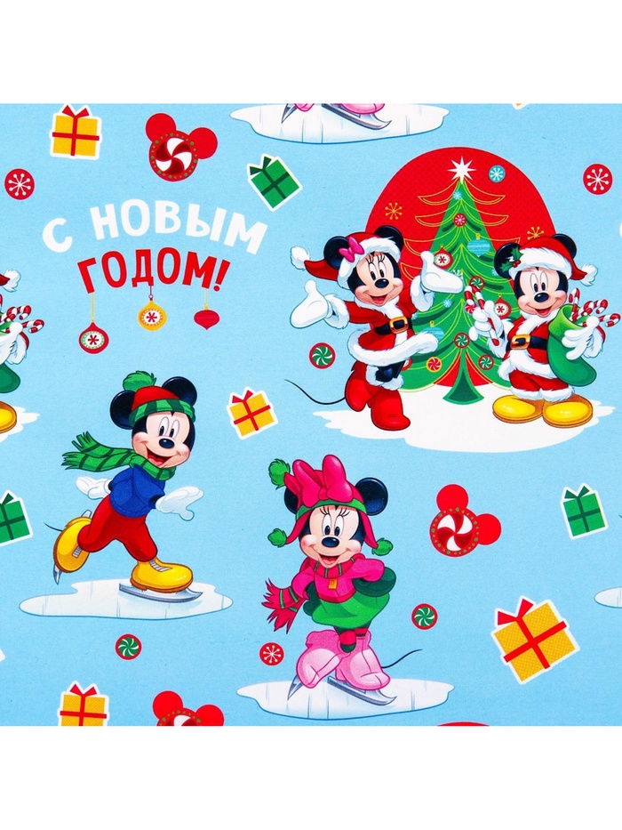 Бумага упаковочная глянцевая, 50 х 70 см «Весёлого Нового года!», Микки Маус — Характеристики