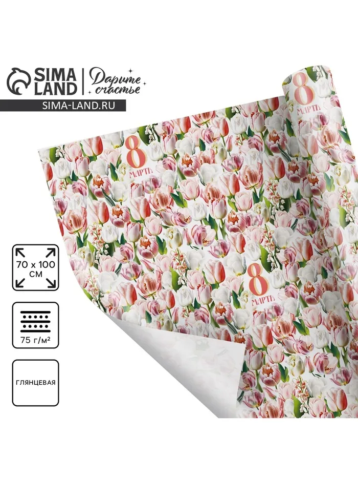 Бумага упаковочная глянцевая «8 марта», 70×100 см — Характеристики