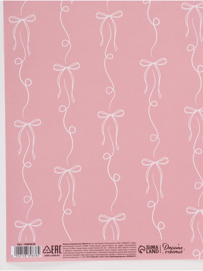 Бумага упаковочная глянцевая «Бантики», 70 × 100 см — Характеристики