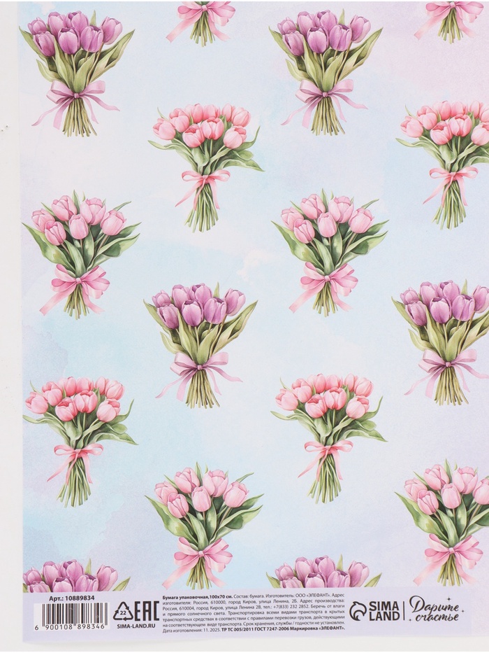 Бумага упаковочная глянцевая «Букетик цветов», 70 × 100 см — Характеристики