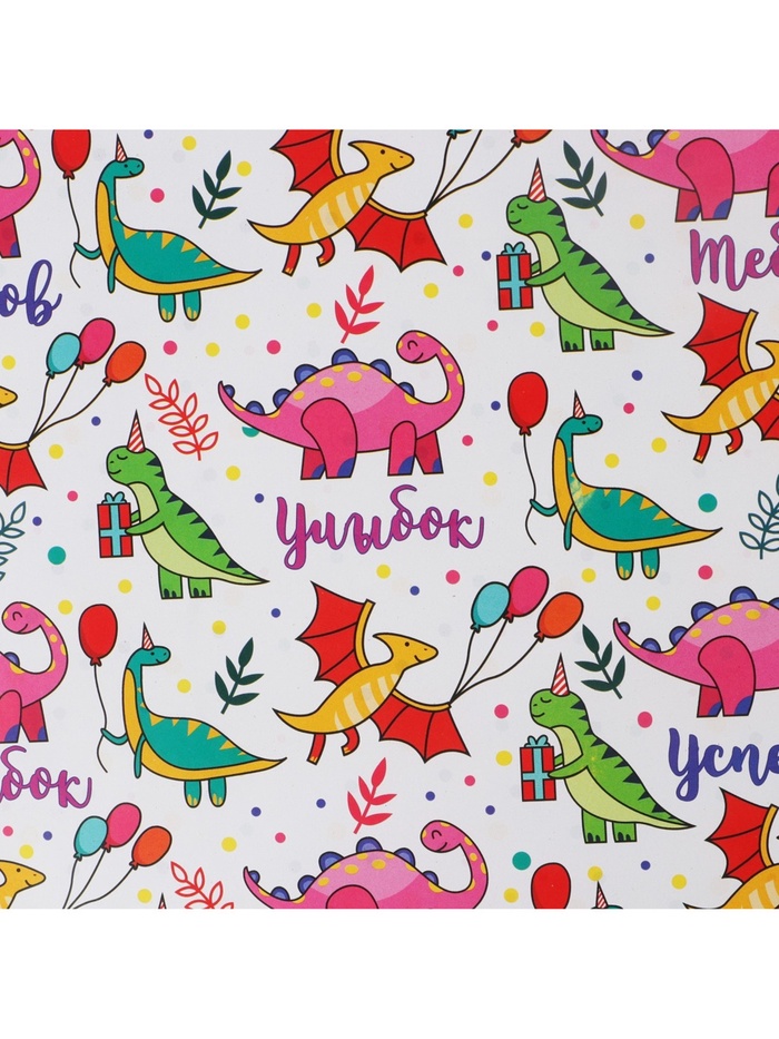Бумага упаковочная глянцевая двухсторонняя «Динозаврики», 70 х 100 см — Характеристики
