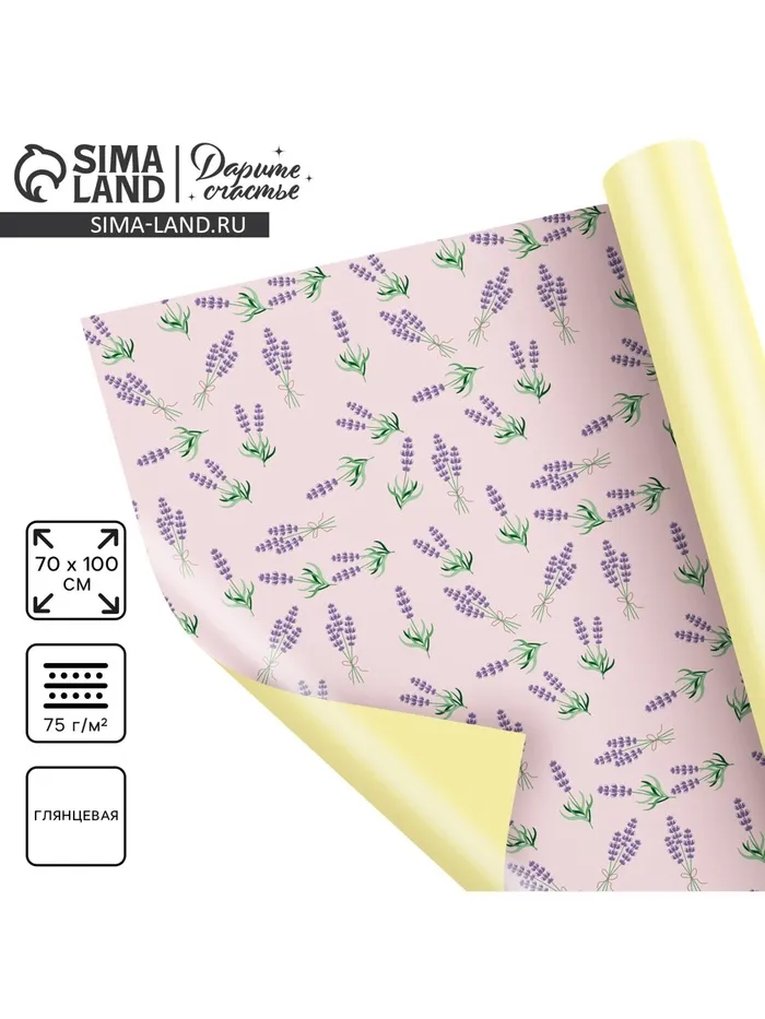 Бумага упаковочная глянцевая двухсторонняя «Лаванда», 70 х 100 см — Характеристики