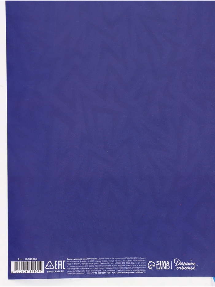 Бумага упаковочная глянцевая двухсторонняя «Паттерн», 70 × 100 см — Характеристики