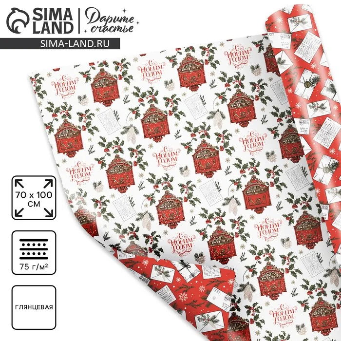 Бумага упаковочная глянцевая двухсторонняя «Почта Ретро», 70 х 100 см — Характеристики