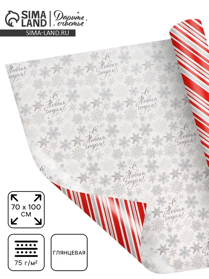 Бумага упаковочная глянцевая двухсторонняя «С Новым годом!», 70 х 100 см — Характеристики