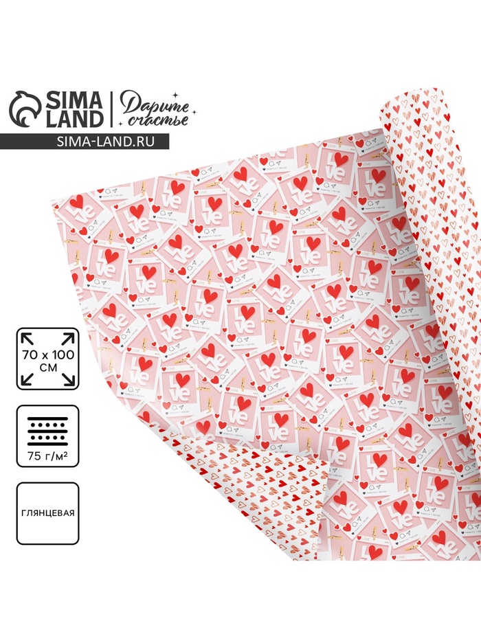 Бумага упаковочная глянцевая двухсторонняя «Там, где живёт любовь», 70 х 100 см — Характеристики