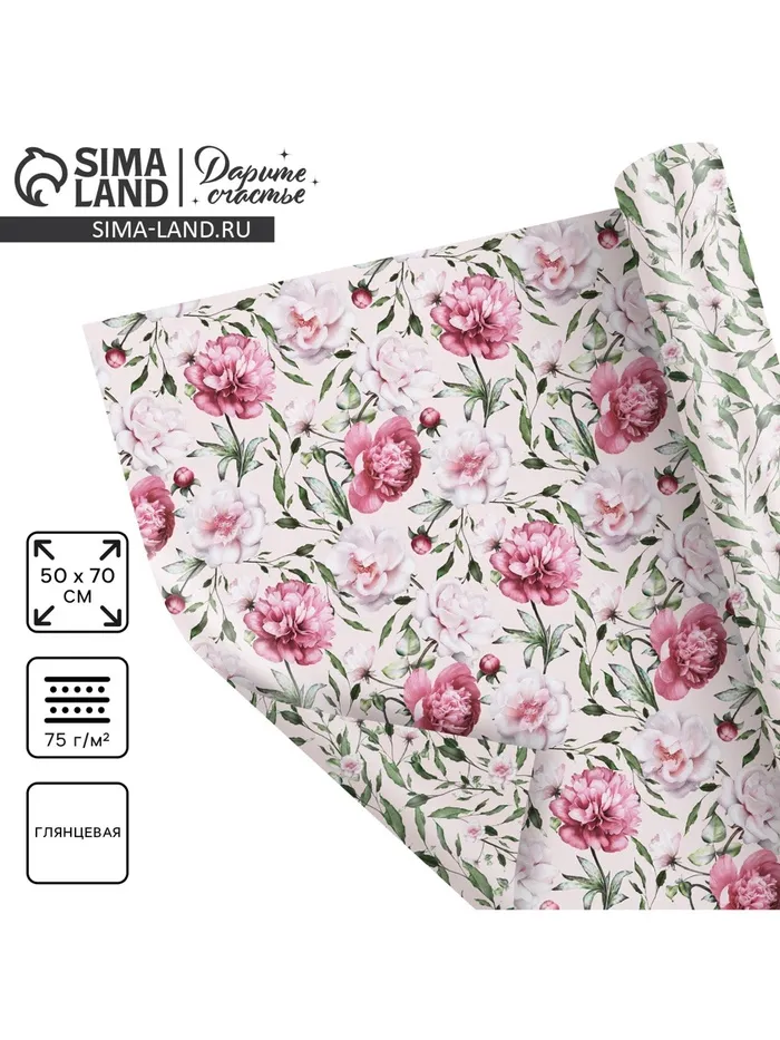 Бумага упаковочная глянцевая двухсторонняя «Цветы», 50 х 70 см — Характеристики