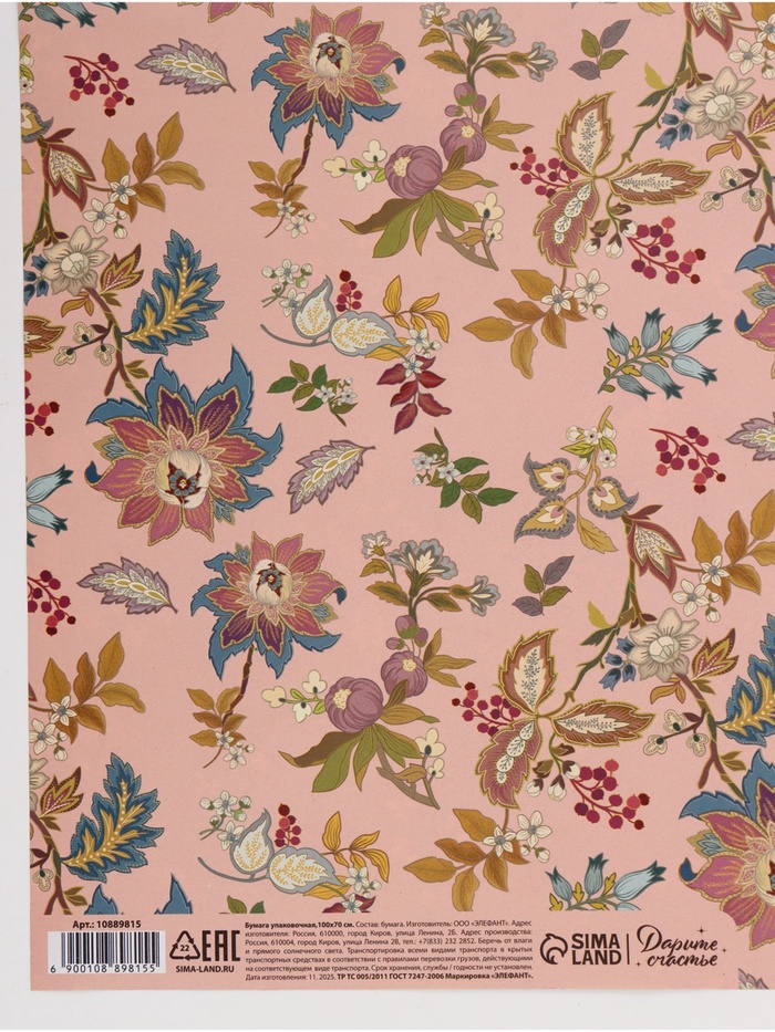 Бумага упаковочная глянцевая двухсторонняя «Цветы», 70 × 100 см — Характеристики