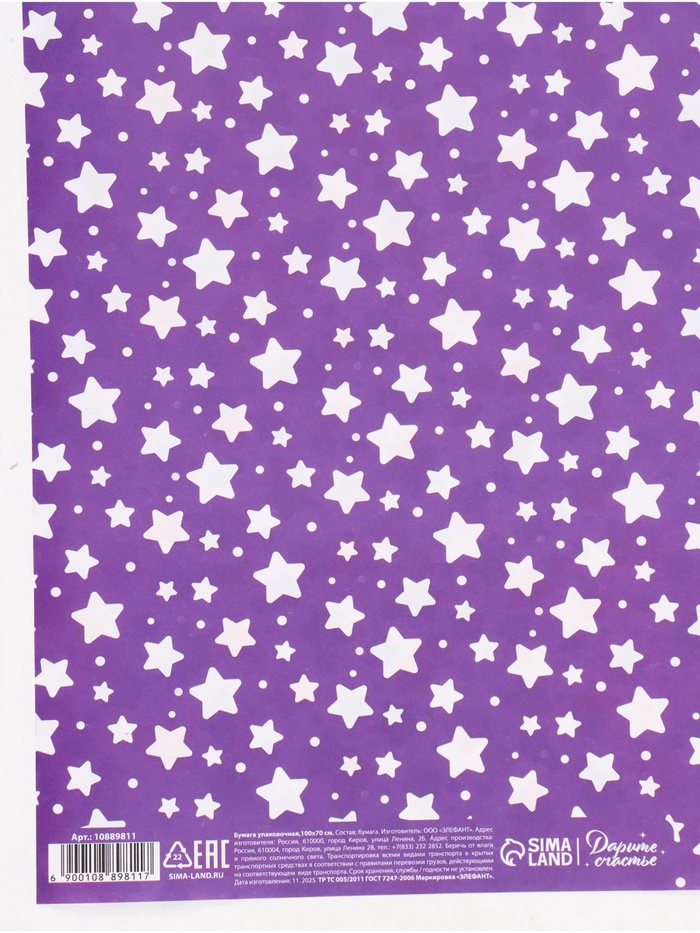 Бумага упаковочная глянцевая двухсторонняя «Звёзды», 70 × 100 см — Характеристики
