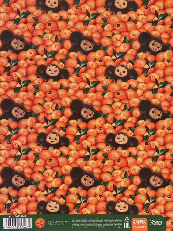 Бумага упаковочная глянцевая двусторонняя «Чебурашка», 70×100 см — Характеристики