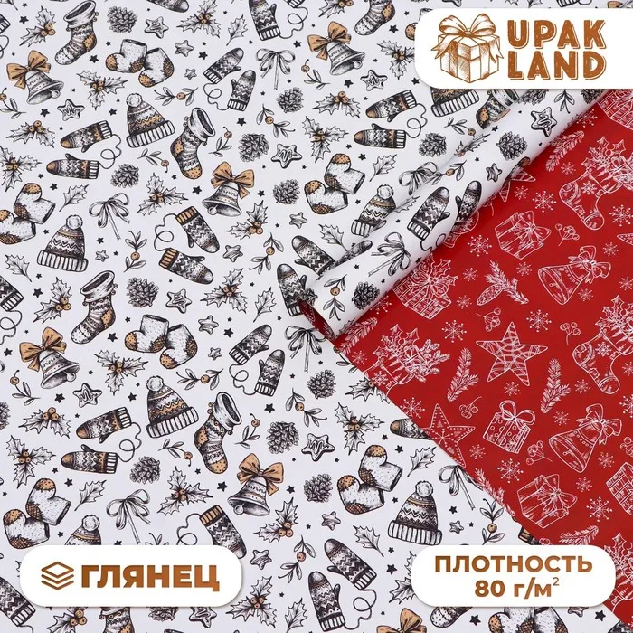 Бумага упаковочная глянцевая, двусторонняя "Новогоднее настроение", 50 х 70 см — Характеристики