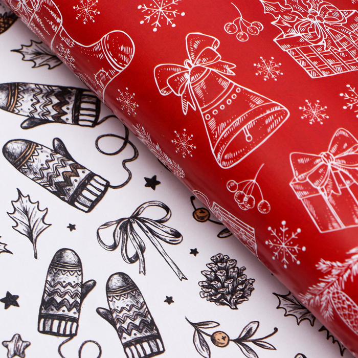 Бумага упаковочная глянцевая, двусторонняя "Новогоднее настроение", 50 х 70 см