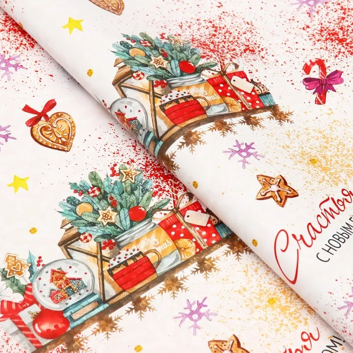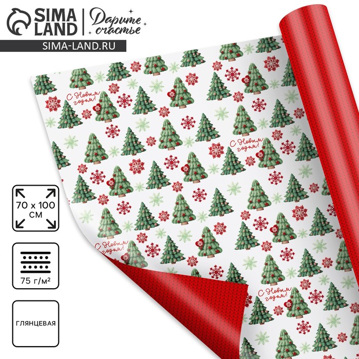 Бумага упаковочная глянцевая двусторонняя «Счастья в Новом году!», 68×100 см — Характеристики