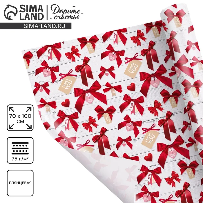 Бумага упаковочная глянцевая «I miss you», 70 х 100 см — Характеристики