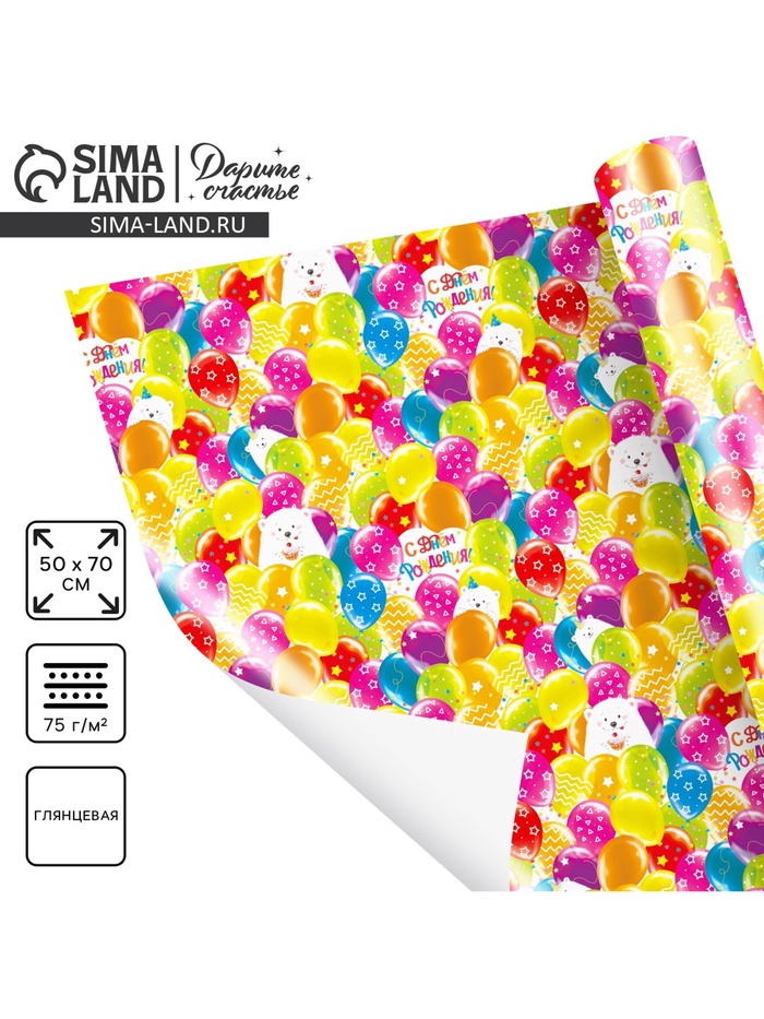 Бумага упаковочная глянцевая «Яркие шарики», 50 х 70 см — Характеристики