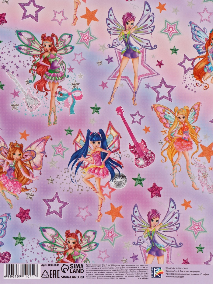 Бумага упаковочная глянцевая «Клуб Винкс», 50×70 см — Характеристики