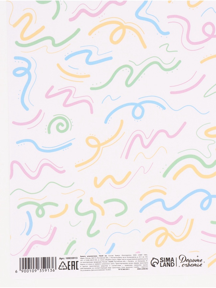 Бумага упаковочная глянцевая «Конфетти», 50×70 см — Характеристики