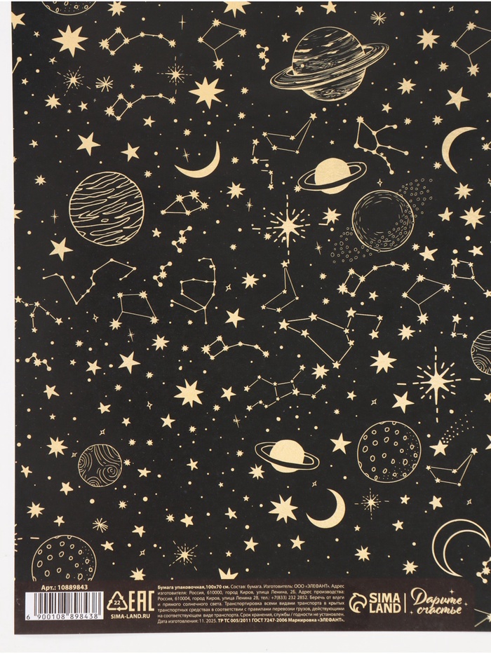 Бумага упаковочная глянцевая «Космос», 70 × 100 см — Характеристики
