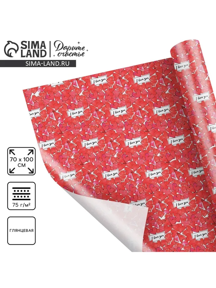 Бумага упаковочная глянцевая «Love», 70 х 100 см — Характеристики