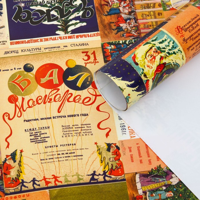 Бумага упаковочная глянцевая «Новогодняя афиша»,70×100 см, 1 лист — Характеристики