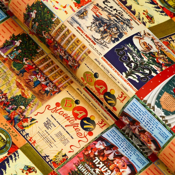 Бумага упаковочная глянцевая «Новогодняя афиша»,70×100 см, 1 лист