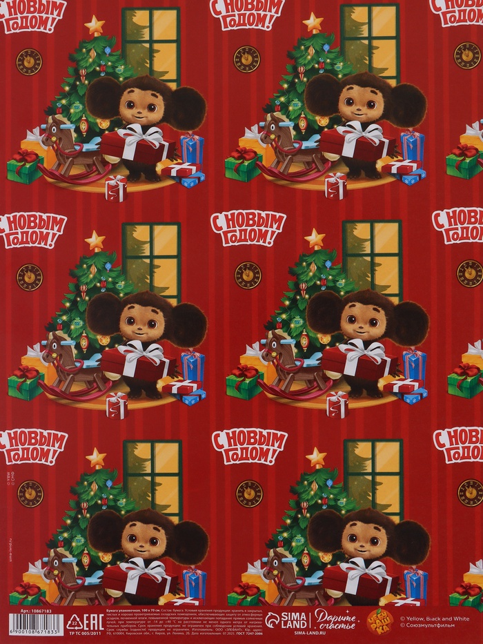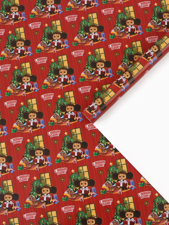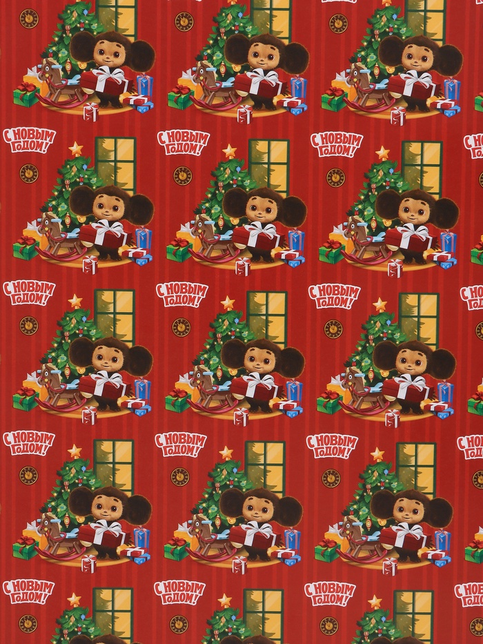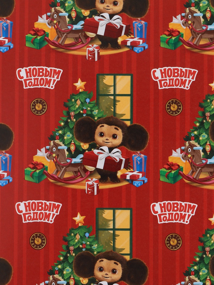 Бумага упаковочная глянцевая «Новый год 2026», лошадка качалка, 70×100 см, Чебурашка — Характеристики