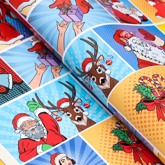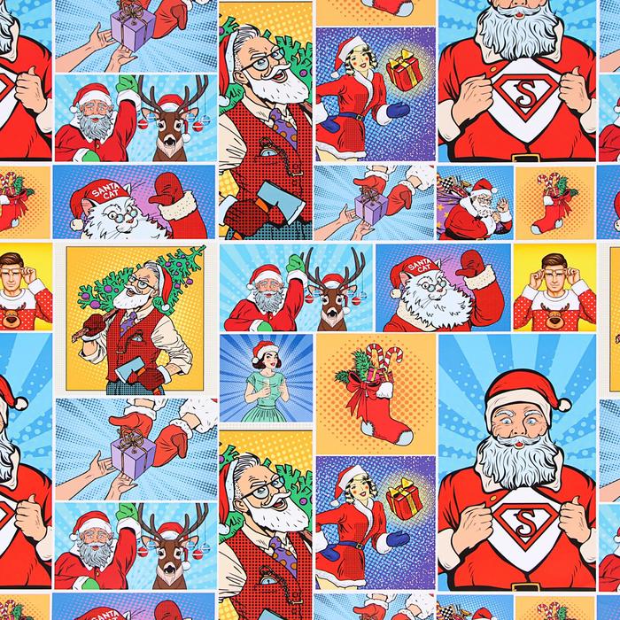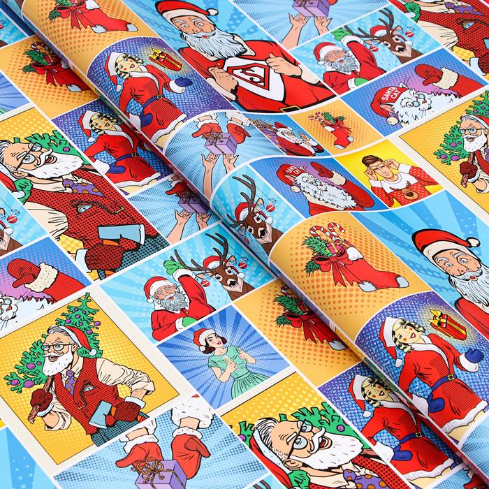 Бумага упаковочная глянцевая "Pop-art новогодние супергерои", 70 х 100 см