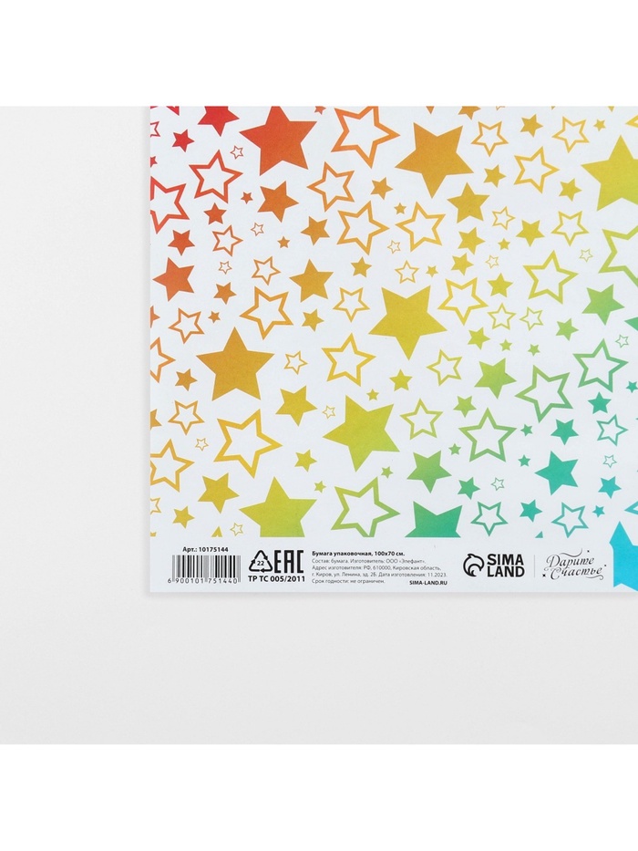 Бумага упаковочная глянцевая «Радужные звезды», 70×100 см — Характеристики