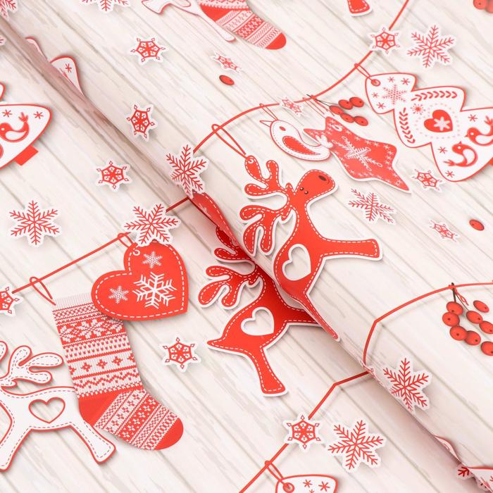 Бумага упаковочная глянцевая «Рождественская гирлянда», 70×100 см,1 лист — Характеристики