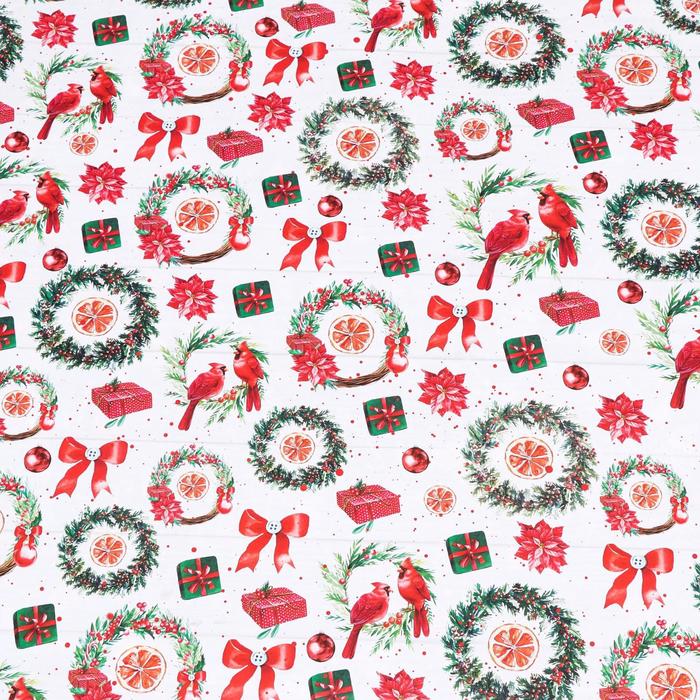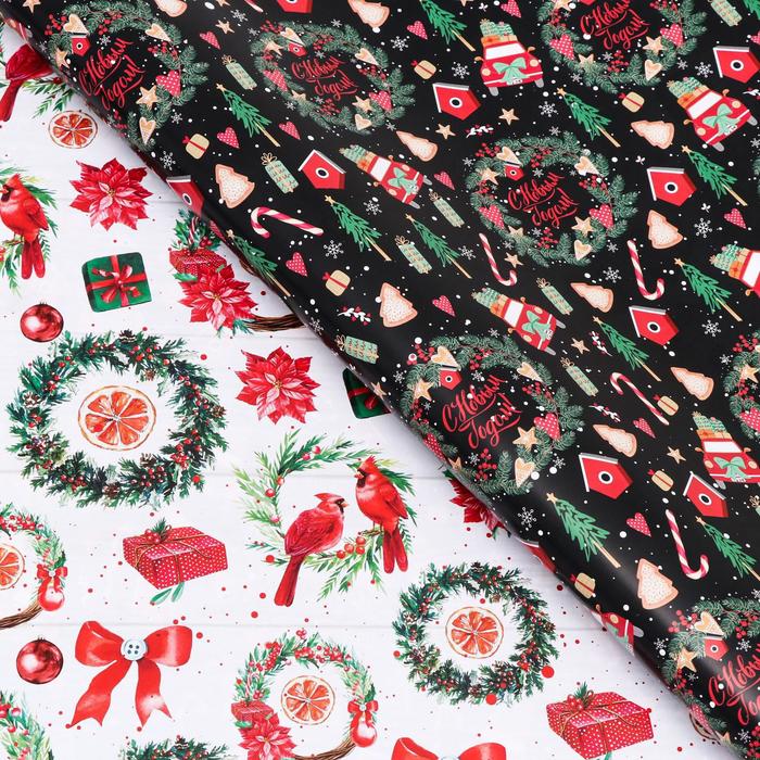 Бумага упаковочная глянцевая «Рождественские веночки», двусторонняя, 70×100 см