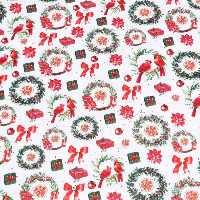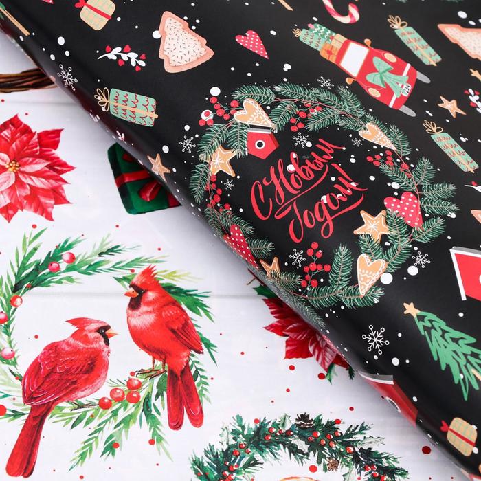 Бумага упаковочная глянцевая «Рождественские веночки», двусторонняя, 70×100 см — Характеристики