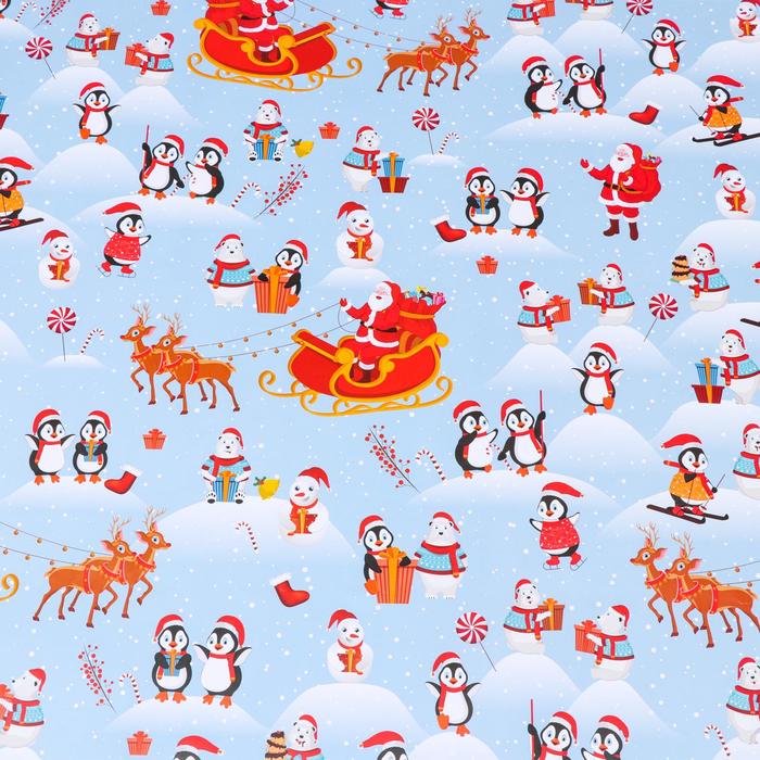 Бумага упаковочная глянцевая «Рождество на Северном полюсе», 70×100 см,1 лист