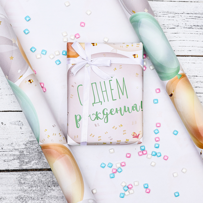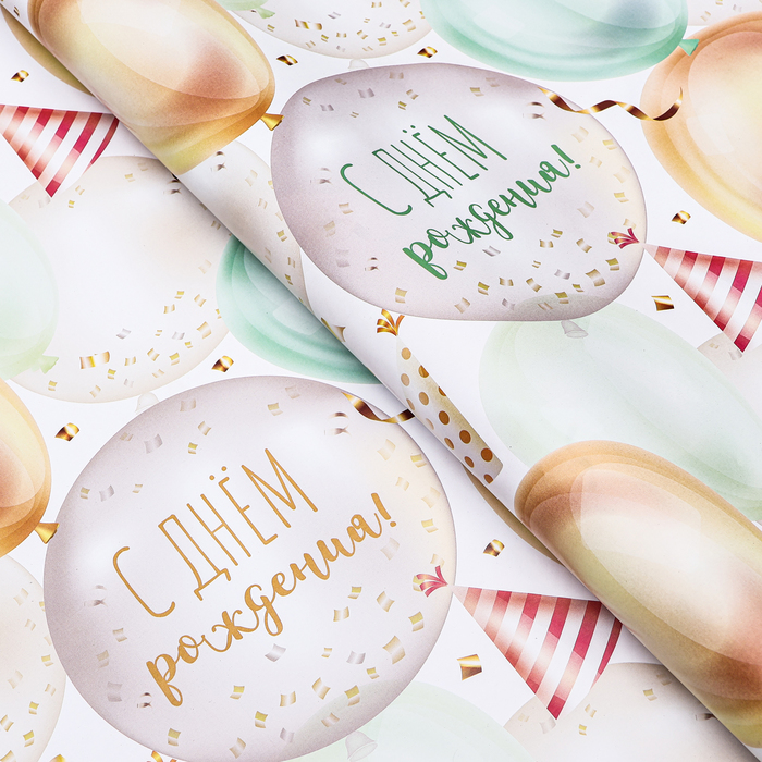 Бумага упаковочная, глянцевая «С Днем Рождения», 70×100 см, 1 лист — Характеристики